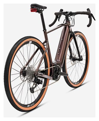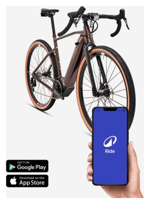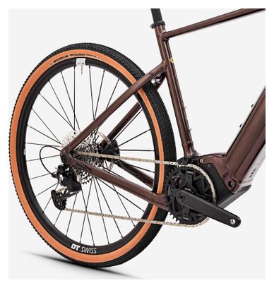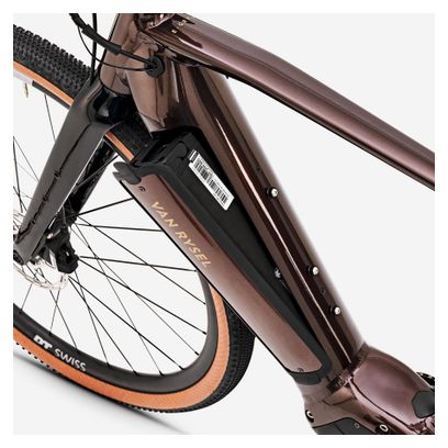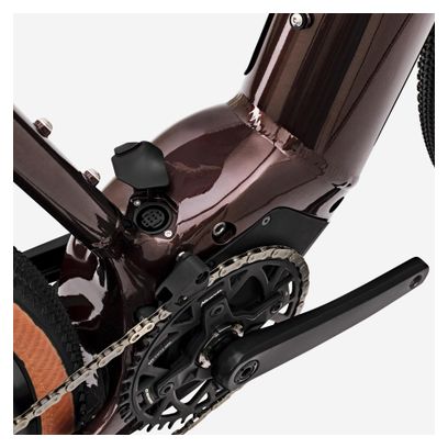 Gravel Bike Électrique Van Rysel E-Grvl AF MD 2024 — Motorisation Brose, transmission Sram Apex 12 vitesses, roues 700 mm, cadre marron pour des aventures électriques tout-terrain.