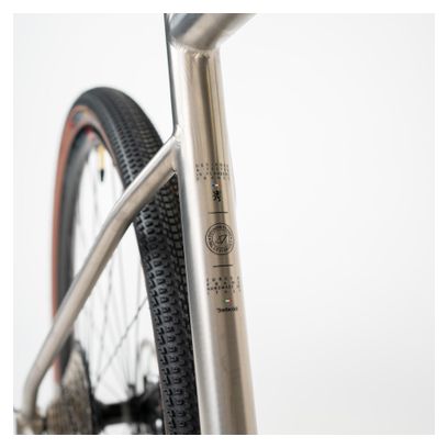 | Cadre | Cadre Gravel Titane GRVL 900, 1600 g en taille M. Axe traversant 12x142mm. Compatibilité normative avec des pneus de section jusqu’à 700×45 / 650×50. Compatibilité normative avec des pneus de section jusqu’à 700×45, 650×50. |