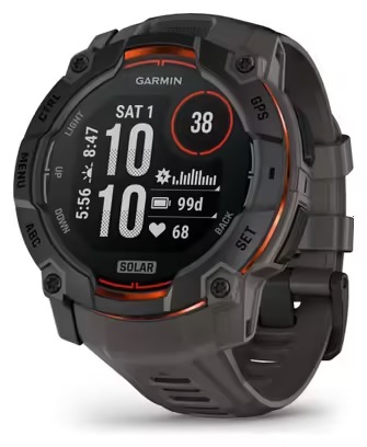- Montre connectée Instinct 3 Solar – 50 mm, noir avec bracelet gris charbon : 010-02935-00.