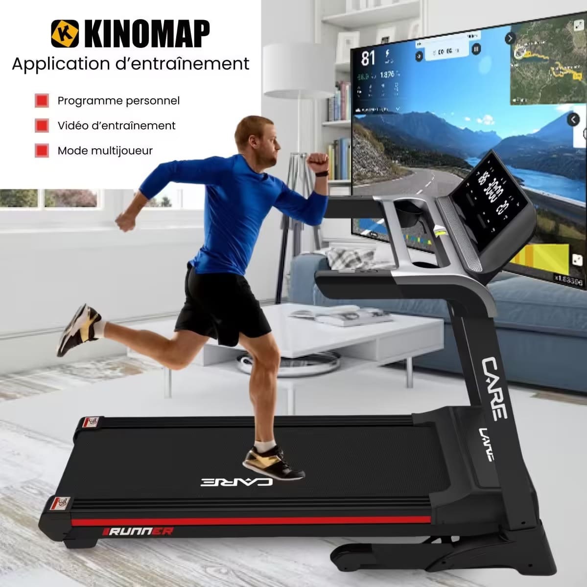 Tapis de course connecté – 20km/h – CARE – RUNNER – KINOMAP