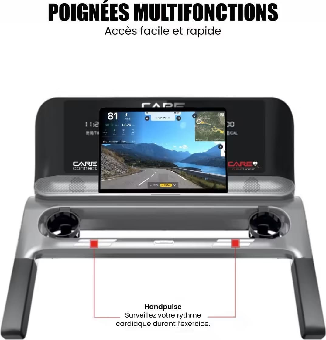 Le tapis de course CARE RUNNER allie puissance, connectivité et confort exceptionnel.