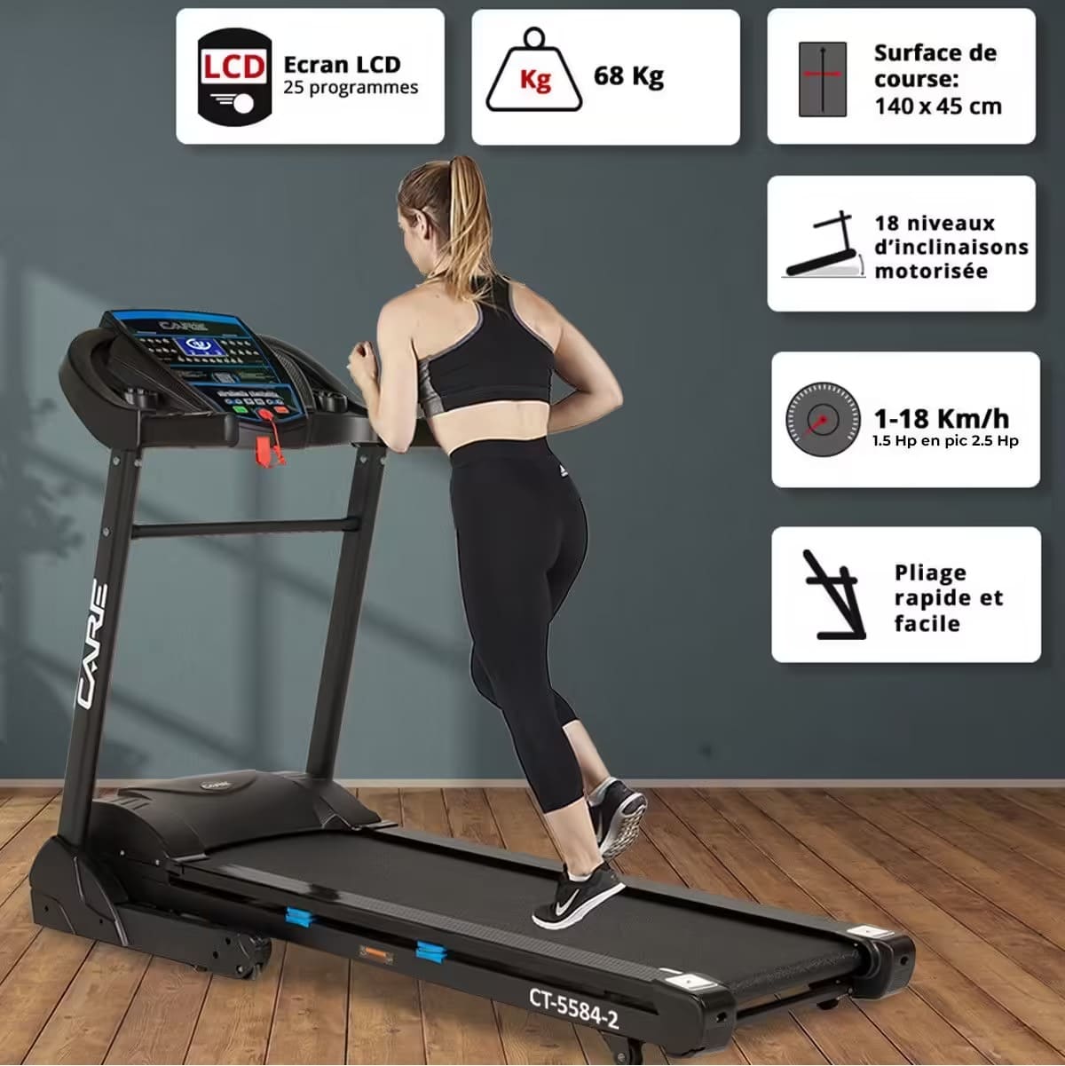 Le tapis de course CARE CT-5584-3 offre une expérience cardio moderne et performante.