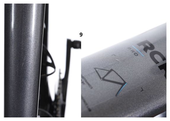 A la suite de son contrôle qualité, de légères traces ont pu être constatées. Ces dernières ne remettent pas en cause la sécurité du vélo (voir photos avec flèches) :