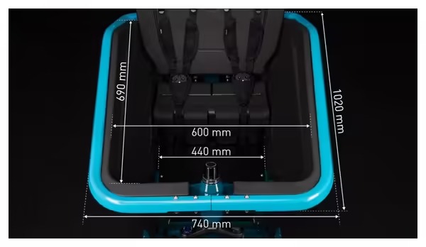 - Coffre d’un volume de 200 L, avec une capacité de charge de 60 kg.