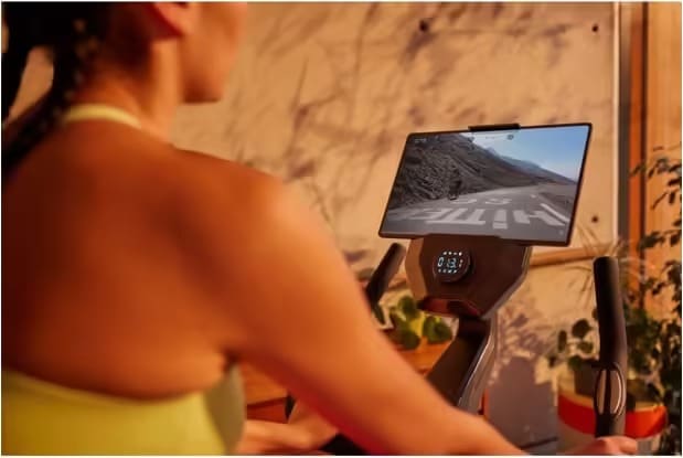 Vous pouvez pédaler à travers les Alpes, Paris ou le désert de l’Arizona. L’écran affiche le parcours en temps réel. L’effort s’adapte au relief du terrain simulé.