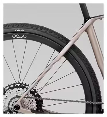 Les roues Oquo RC25 Pro, associées aux pneus Vittoria Terreno Dry Gravel G2.0 TLR 700x45c, garantissent une excellente adhérence sur les surfaces variées. La largeur des pneus assure un confort supplémentaire et une meilleure absorption des chocs, idéale pour les longues sorties sur chemins accidentés. La compatibilité avec des pneus jusqu’à 50 mm offre une grande polyvalence pour adapter le vélo à vos besoins.
