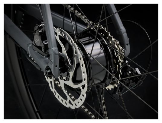 | Cadre | Aluminium : Aluminium Alpha Série 100, transmission moteur moyeu, tube de direction conique, acheminement interne des câbles, disque à fixation Flat-Mount, fixation de porte-bagages et de garde-boue |