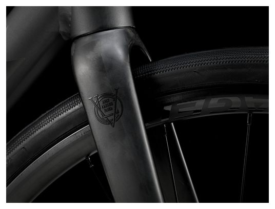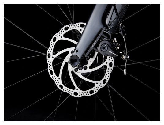 Le cadre en aluminium Alpha Série 100 offre robustesse et légèreté avec un tube de direction conique et un acheminement interne des câbles. Il intègre des fixations pour garde-boue, un frein à disque Flat Mount et un axe traversant 142×12 mm. La fourche en carbone Domane AL est équipée d’un axe traversant 12×100 mm et de fixations pour garde-boue, garantissant confort et maniabilité.