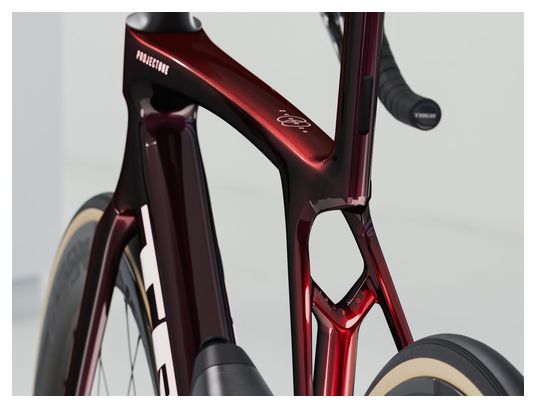 | Fourche | Carbone : Madone Gen 8 full carbon, tapered carbon steerer, internal brake routing, flat mount disc, 12x100mm chamfered thru axle |