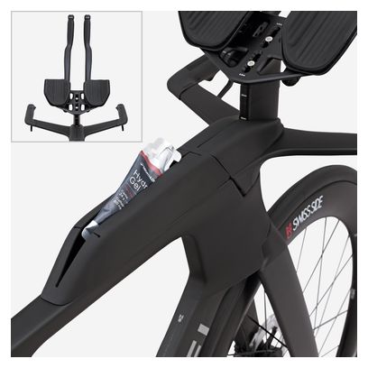Le XCR Tri propose un poste de pilotage conforme aux attentes de positionnement des triathlètes avec la possibilité de maximiser les longueurs et largeurs de réglages grâce à une platine de fixation ainsi que des extensions et repose bras spécifiques triathlon. Le cadre Tri intègre également une toolbox et une bento box.