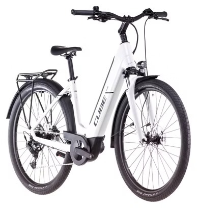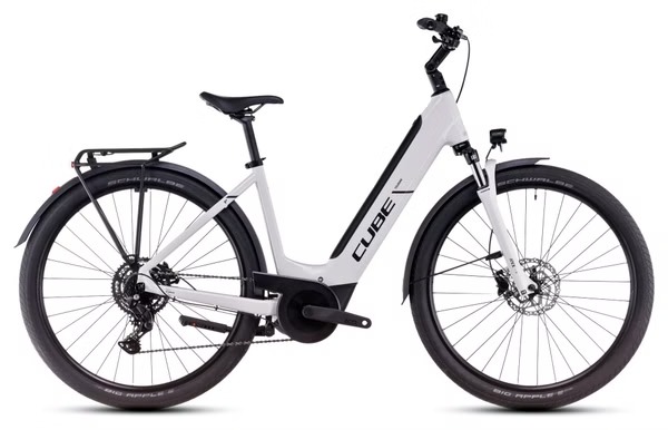 VTC Électrique Cube Touring Hybrid One 625 Easy Entry Shimano Cues 9V 625 Wh 700 mm Blanc Cotton Gris 2025