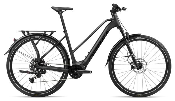 Alliant style urbain et capacités tout-chemin, le VTC électrique Orbea Kemen Mid 30 2024 est équipé d’une transmission Shimano CUES 10 vitesses, d’une batterie de 540 Wh et de roues 29’’, dans un coloris Noir Metallic Night à l’élégance discrète.