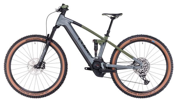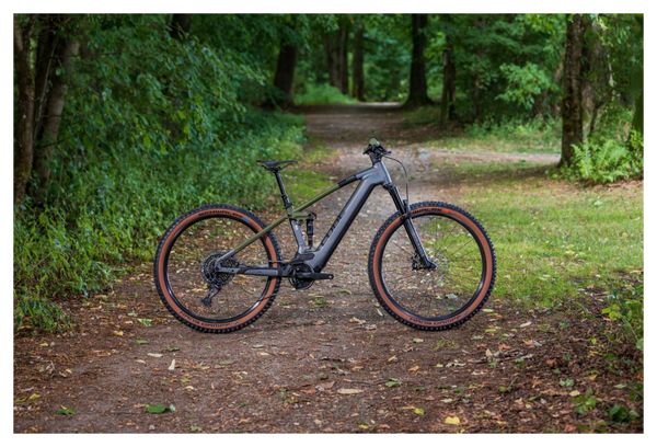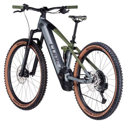 RVTT Électrique Tout-Suspendu Cube Stereo Hybrid 120 TM 750 Sram GX Eagle 12V 750 Wh 29” Gris Flash Vert Olive