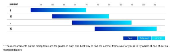 Pour déterminer votre taille de vélo, nous vous invitons à consulter la grille de correspondance dans le sélecteur de la fiche du vélo. Elaboré par nos soins selon les standards propres aux marques, il indique pour chaque taille de cadre, la taille du cycliste correspondante.