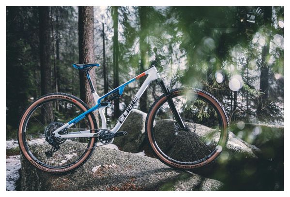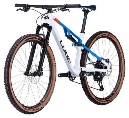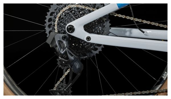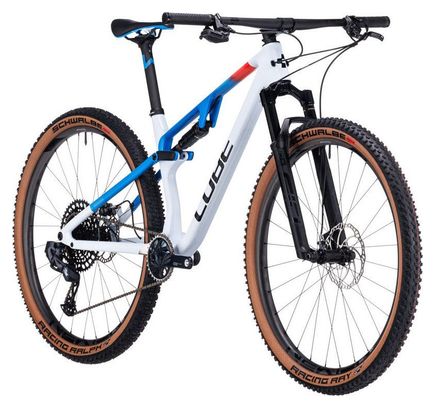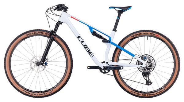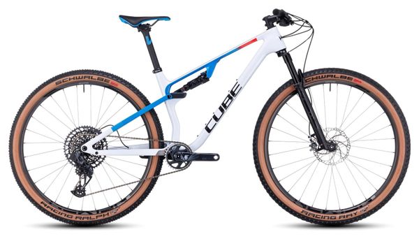 VTT Tout-Suspendu Cube AMS Zero99 C:68X SLX 29 Sram GX Eagle AXS 12V 29” Blanc Bleu Teamline