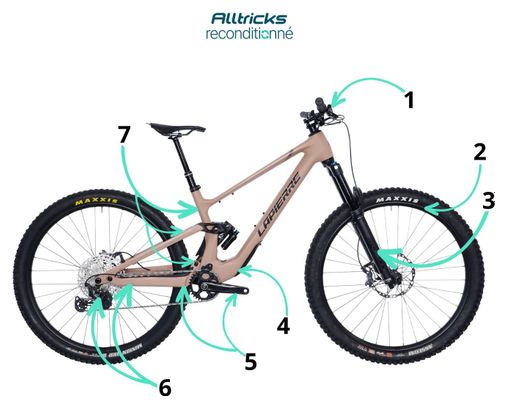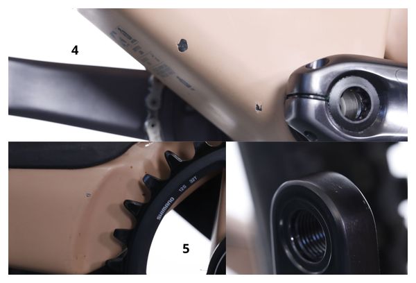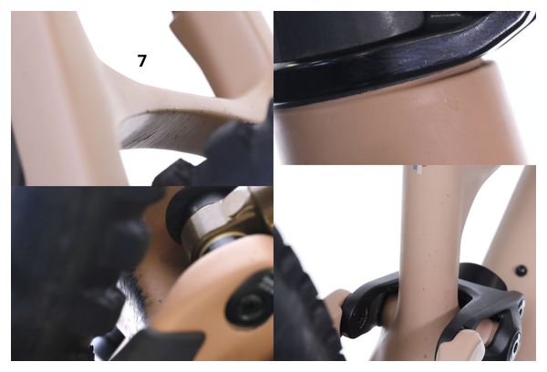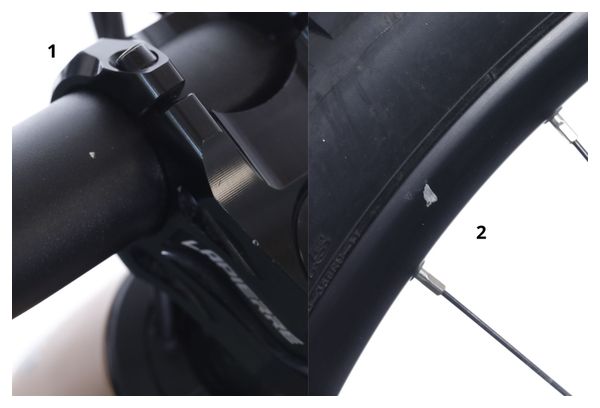 Ce vélo était un vélo de Parc Test Lapierre. Suite à son passage dans nos ateliers, de légères traces ont pu être constatées (voir photos avec les flèches).
