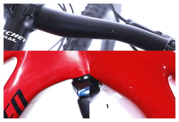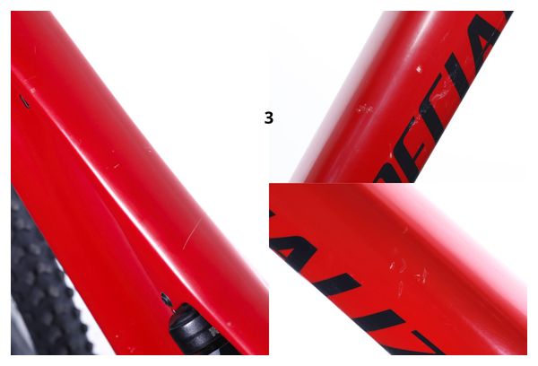 Acheté en 2021, ce vélo appartenait à Gilles, il a roulé 6560 kilomètres. A la suite de son contrôle qualité, de légers dommages ont pu être constatés (voir photos avec flèches).