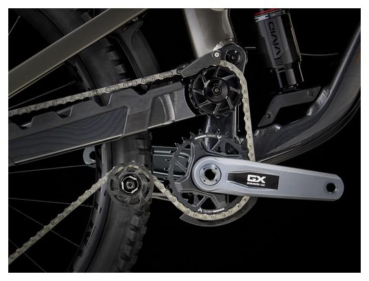 Le Slash 9 GX AXS T-Type est un VTT enduro qui vous offre des performances haut de gamme avec un cadre en aluminium. Il repose sur un châssis à pivot haut qui renforce l’accroche dans les montées intenses et établit la stabilité quand vous repartez dans la descente. Le mix de pneu avec 29 pouces à l’avant et 27,5 à l’arrière lui donne un caractère ludique. Vous obtenez également un ensemble de suspension amélioré de 170 mm à l’avant et à l’arrière capable de gérer tous les obstacles. Une transmission sans fil SRAM GX AXS vient compléter l’ensemble avec ses changements précis.
