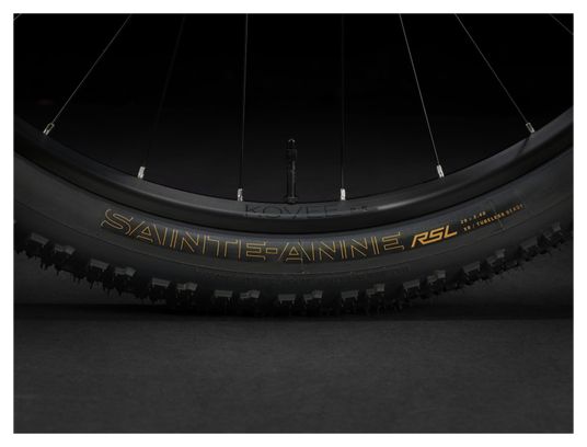 Les roues Bontrager Kovee, tubeless ready, disposent d’une largeur interne de 23 mm avec 28 rayons. Les pneus Bontrager Sainte-Anne RSL en 29×2,40 pouces offrent une carcasse 120 tpi et compatibilité tubeless pour une meilleure adhérence et légèreté.