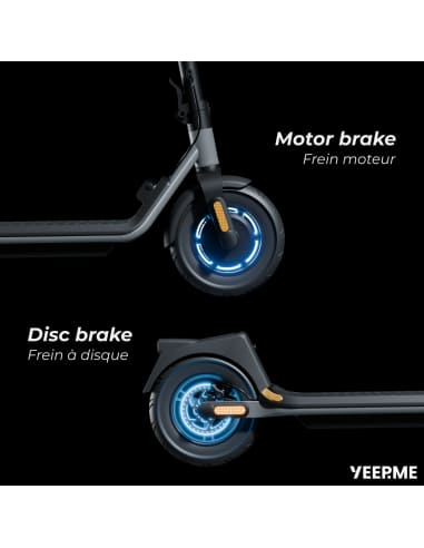 Pour une sécurité renforcée, la trottinette dispose de deux freins complémentaires.